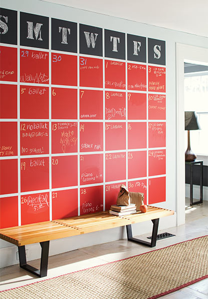 Paint a calendar along the entryway in eye-catching Million Dollar Red 2003-10 to give family members a last reminder of their day as they head out the door.