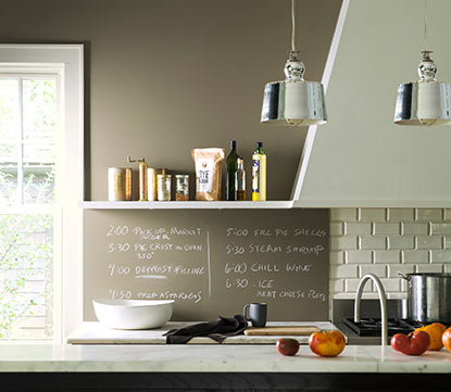 From large hand-drawn murals to delicate labels on bottles and jars, chalkboard paint offers endless opportunities. It also makes schedules and to-do lists more fun. Benjamin Moore’s ben® Chalkboard, available in thousands of colors, makes it all possible.