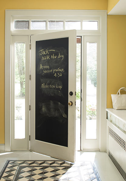 Chalkboard paint can add a design edge to any room in the house–and make communicating a lot more playful too!