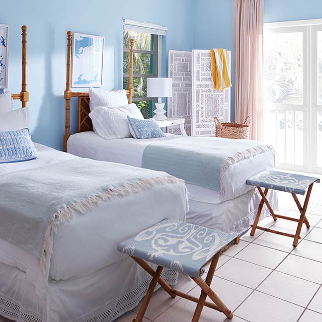 Ονειρευτείτε ένα τροπικό νησί και δημιουργήστε στο χώρο σας τη δική σας παραδεισένια παλέτα με όμορφα πατώματα με πλακάκια, διαφανείς κουρτίνες και ανάλαφρα σκεπάσματα, και περιβάλλετέ τα με λευκούς και μπλε συνδυασμούς χρωμάτων, όπως οι ακόλουθοι: